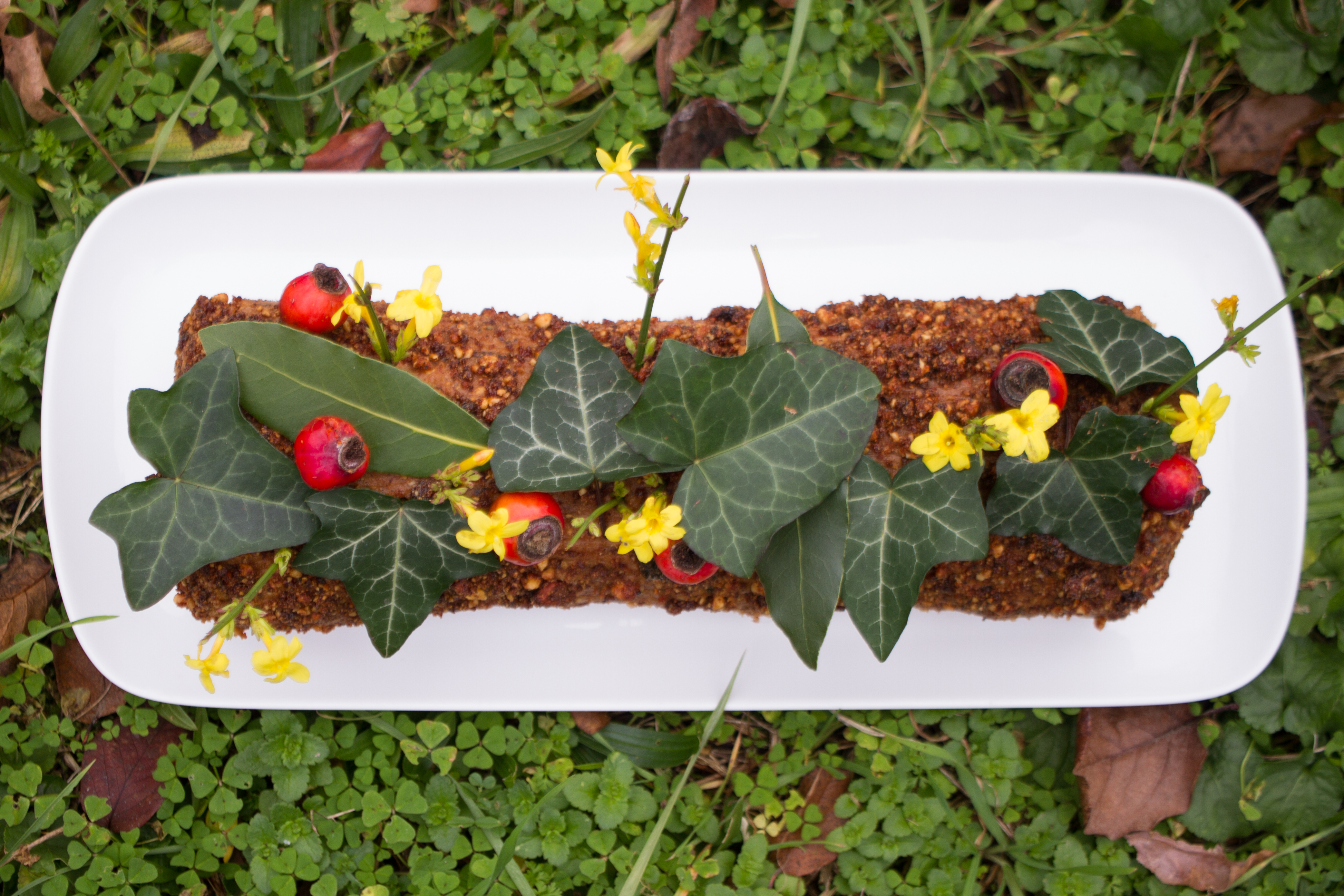 La force de cette bûche, c’est le goût intense du pralin maison réalisé la veille à partir de noisettes en coque. Sa délicatesse vient de l’inspiration du jardin.